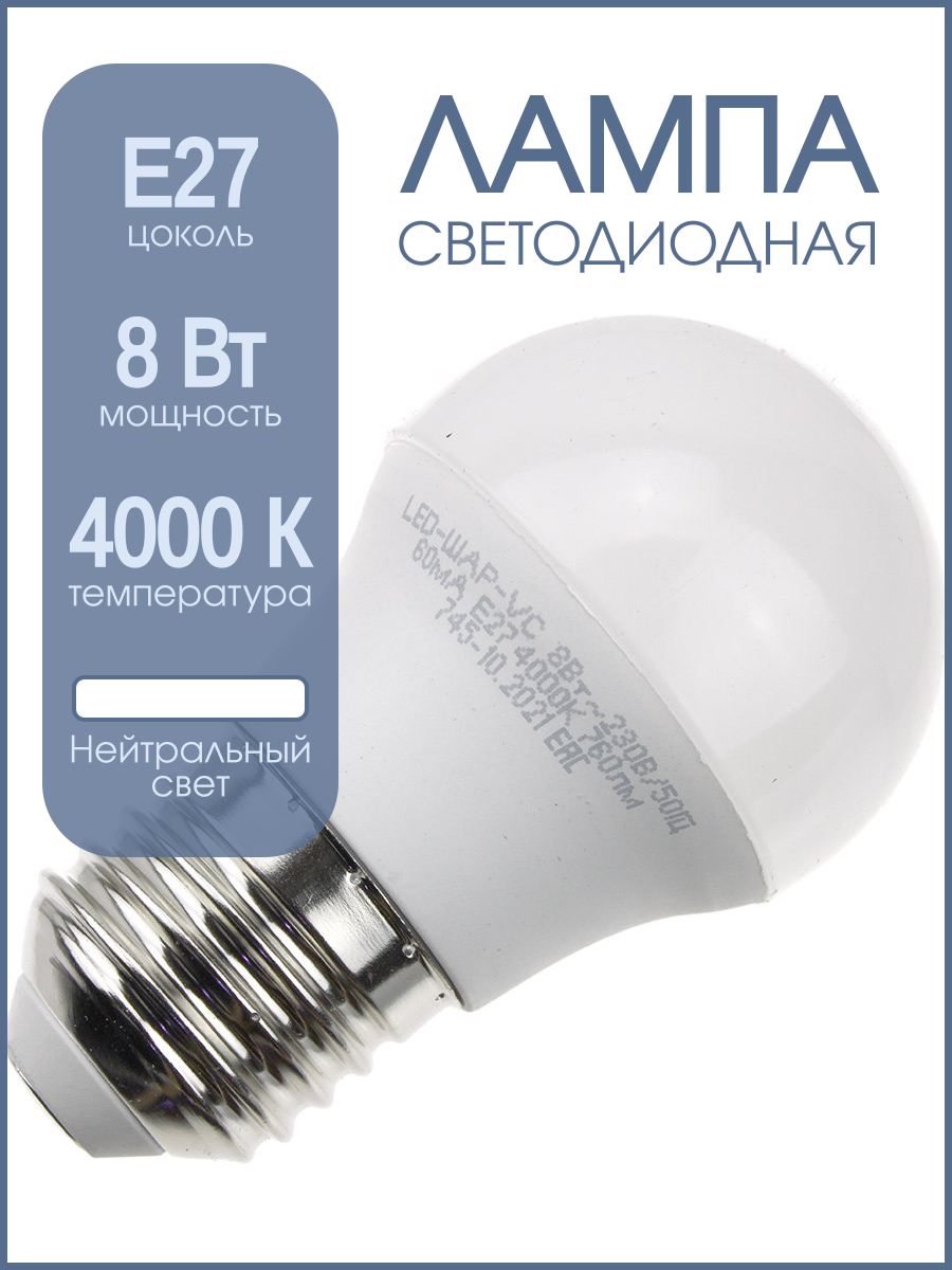 Светодиодная LED-лампа - яркий свет, максимальная экономия. Светодиодная лампа (LED) — это современный источник света, в котором электрический ток преобразуется в видимое излучение с помощью полупроводниковых кристаллов (светодиодов). В отличие от старых ламп накаливания, свет здесь создается не за счет нагрева металлической нити, а в процессе «танца» электронов внутри микрочипа. Значительное снижение расходов на электроэнергию по сравнению с устаревшими лампами. Прослужит вам много лет, не требуя частой замены. Не содержит ртути, не мерцает и безопасна для глаз. Подходит для люстр, бра, торшеров и любого светильника со стандартным цоколем.