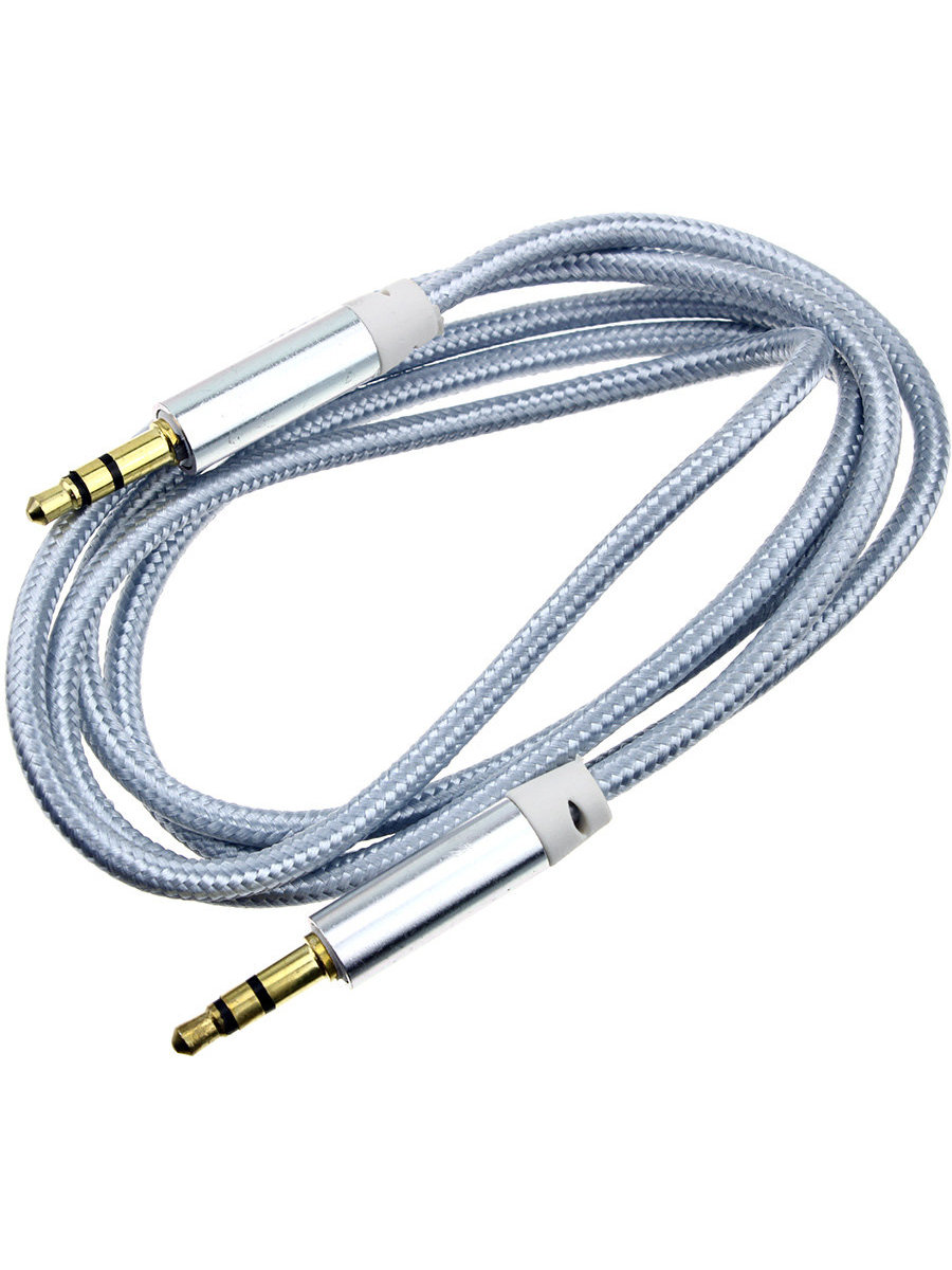 Аудио кабель прямой 3,5 мм на угловой 3,5 мм с металлическими разъемами, длина 0.9 м, цвет серый