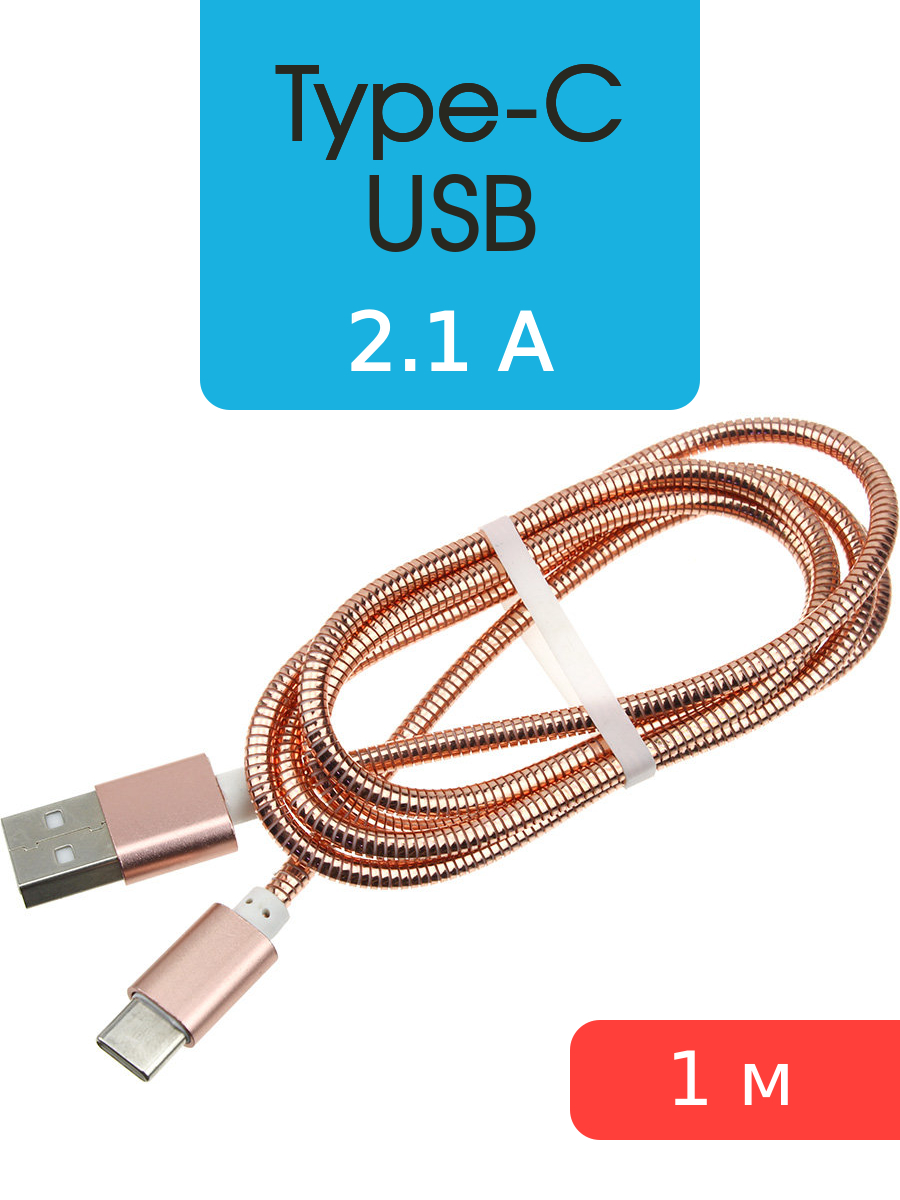 Шнур USB A-USB Type C 1м оплетка металл, бронированный, медный