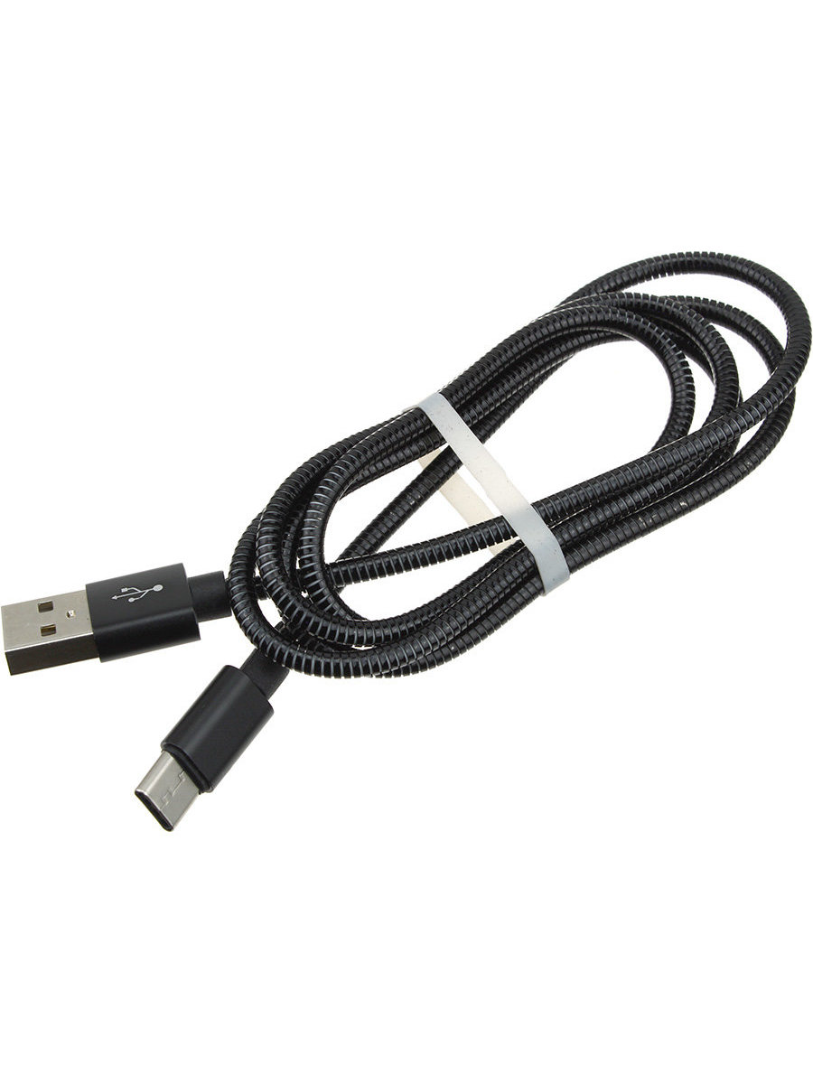 Шнур USB A-USB Type C 1м оплетка металл, бронированный, черный