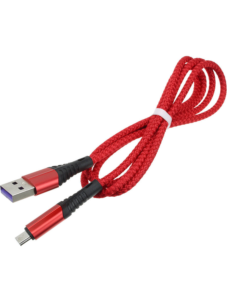 Шнур USB A-Micro-USB B (Android) 5PIN 1м, 3A, быстрая зарядка, красный