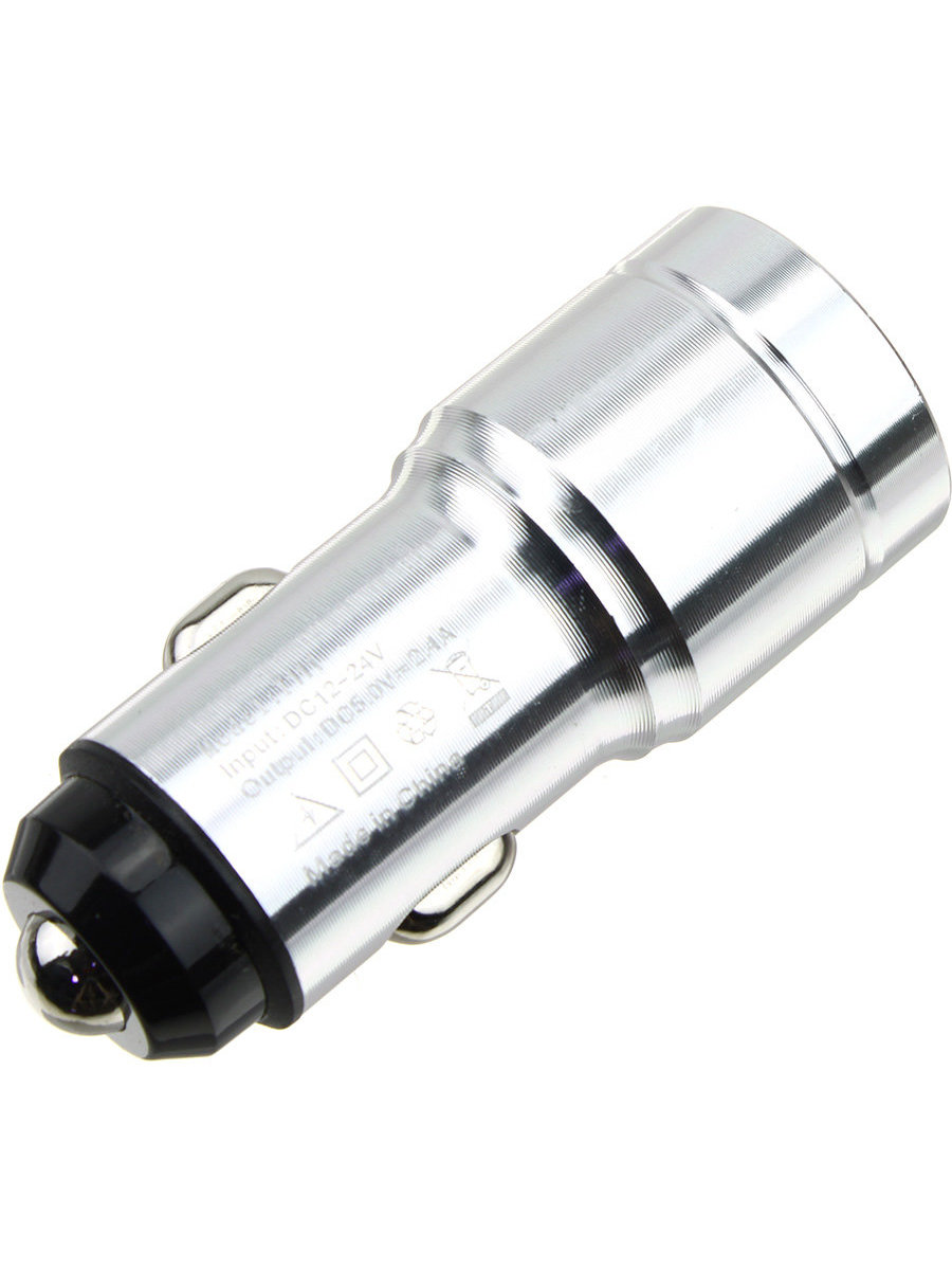 Зарядное устройство вход штекер прикуривателя, выход 2USB(G) 5В 2.4/1А, silver