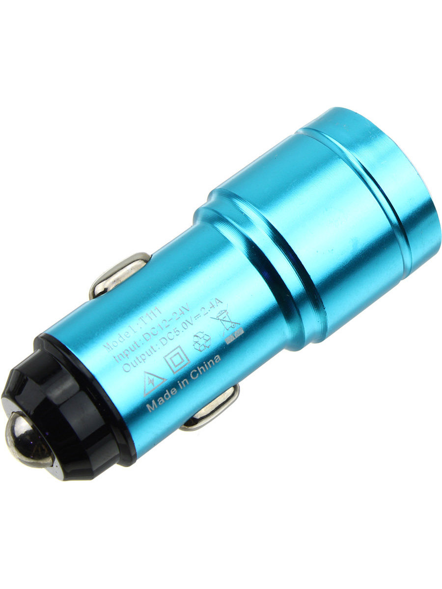 Зарядное устройство вход штекер прикуривателя, выход 2USB(G) 5В 2.4/1А, blue