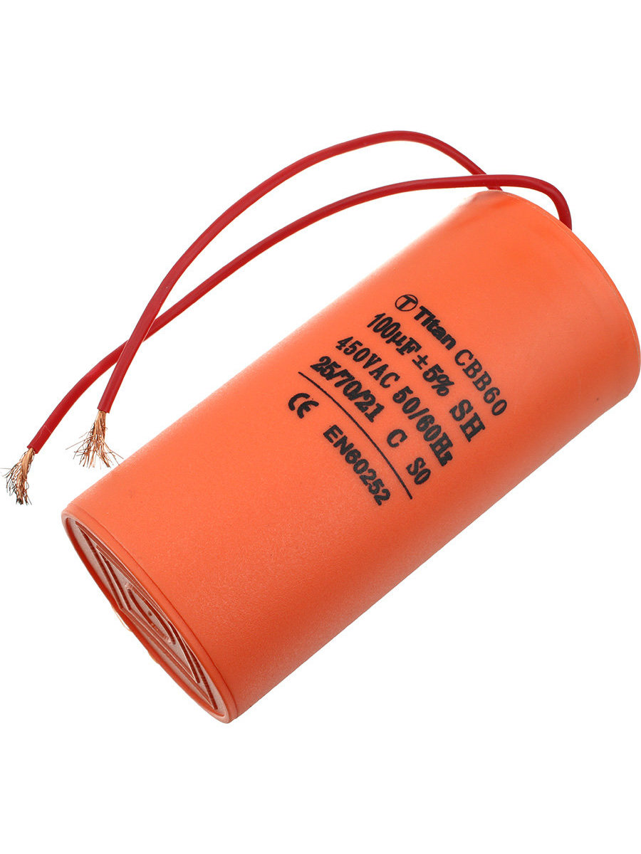 Конденсатор пусковой 100мкФ 450В 5% выводы провод