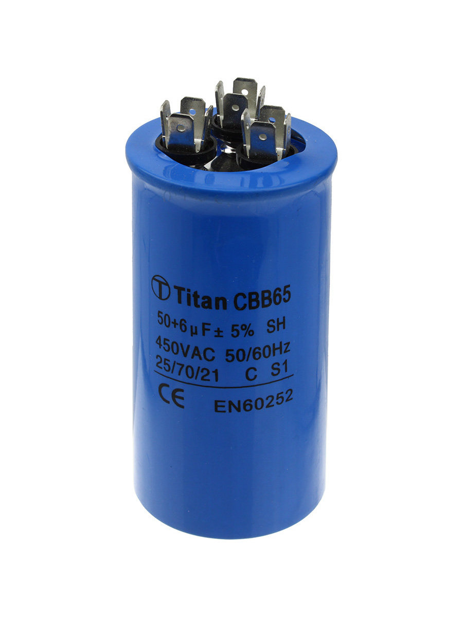 Конденсатор пусковой 50мкФ 450В VAC клеммы металл корпус СВВ65 С, для кондиционеров