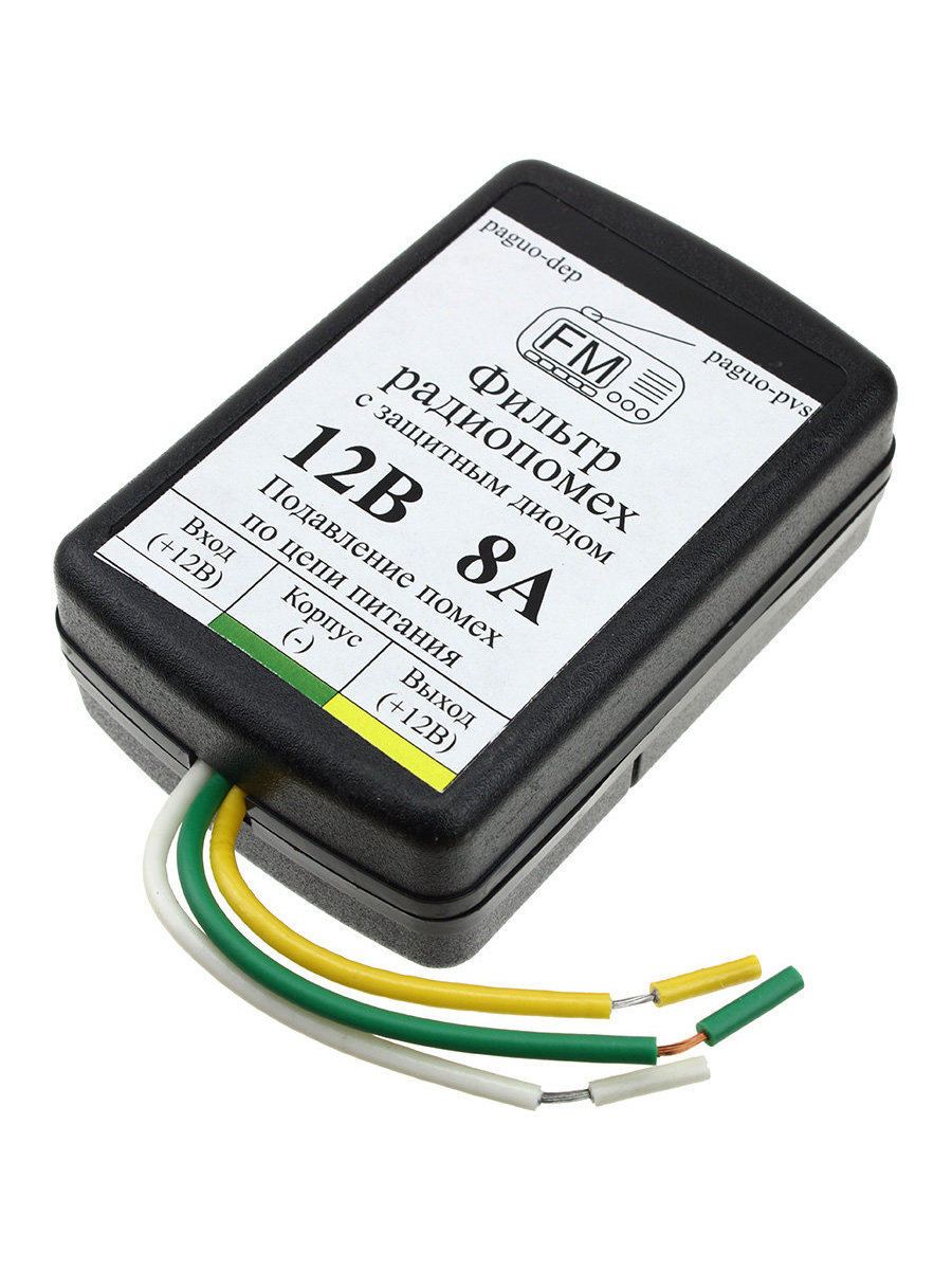 • Применяется для ослабления помех, проникающих в автомагнитолу по цепи питания 12 V от бортовой сети автомобиля.