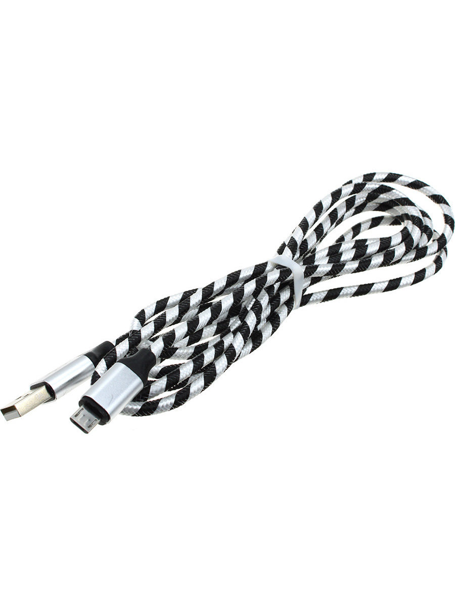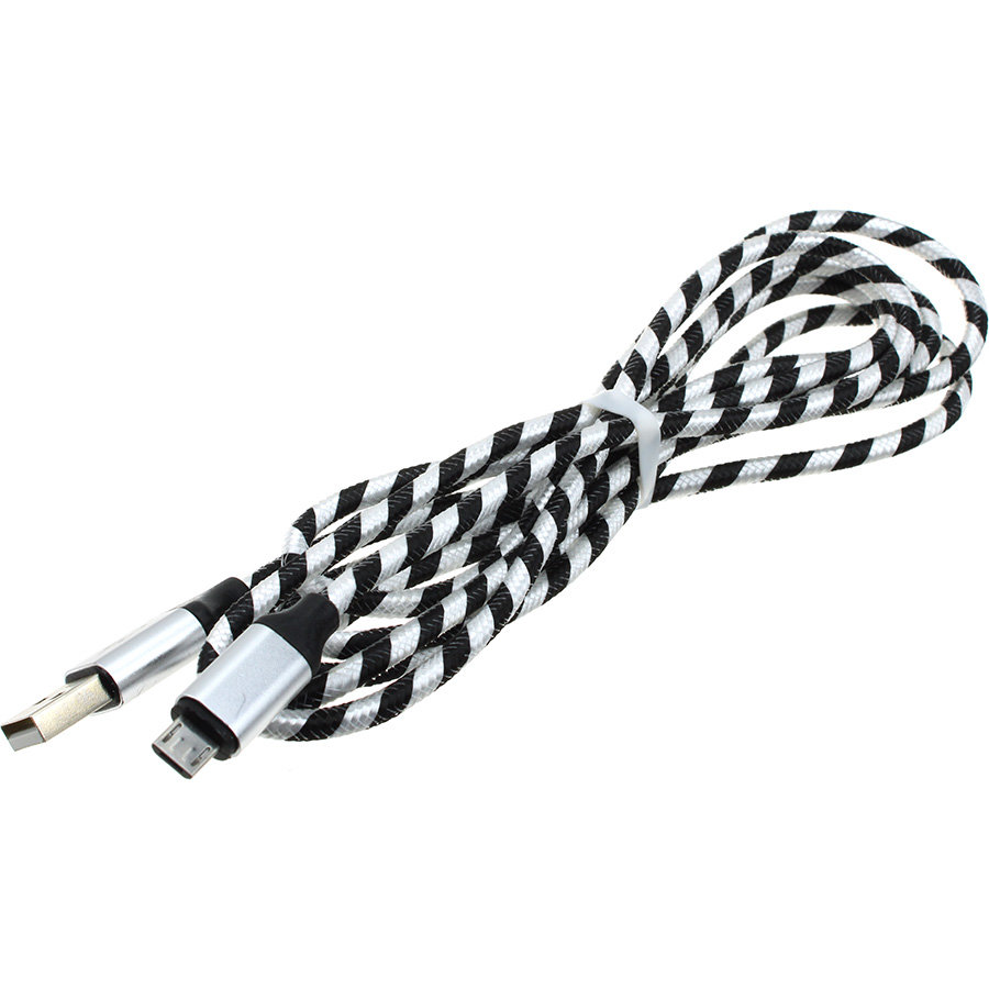 Шнур USB A-microUSB B 5PIN 1,8м оплетка ткань, бело-черный