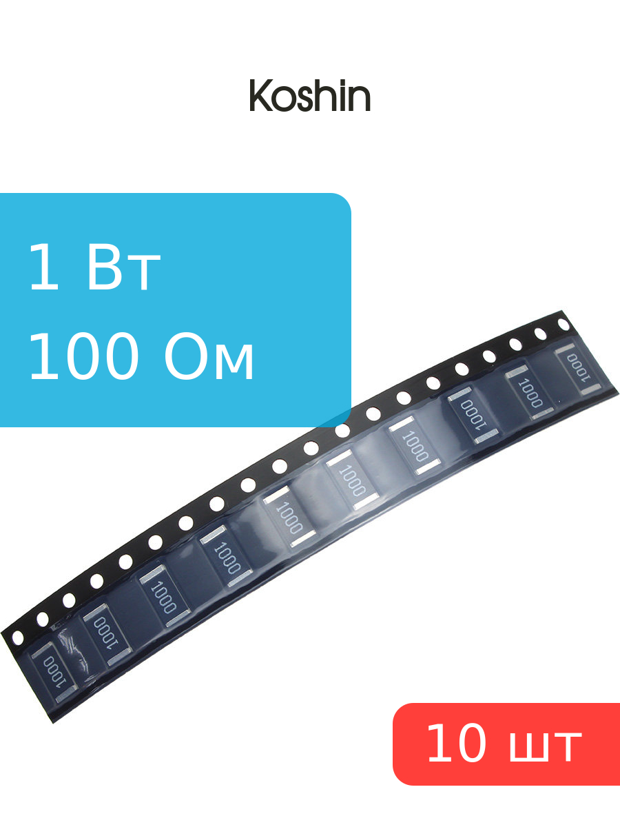 Номинальное сопротивление 100 Ом, Нормированный допуск 1%, Рассеиваемая мощность 1 Вт, Корпус SMD 2512, Способ монтажа smd