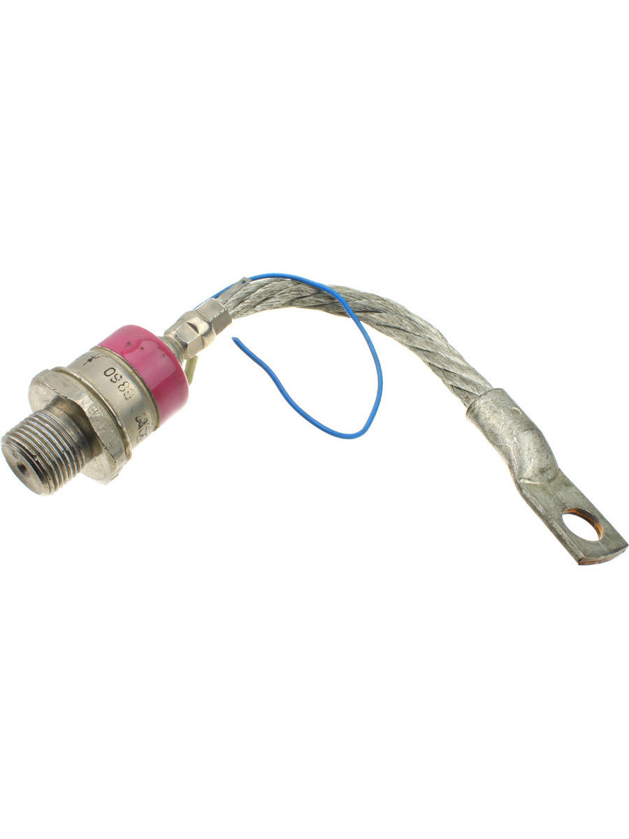 Тиристоры Т161-125 – силовые тиристоры штыревой конструкции общего назначения. Преобразовывают и регулируют постоянный и переменный ток до 125 ампер частотой до 500 Гц в цепях с напряжением 100 В – 1800 В. Тип корпуса тиристоров Т161-125 – ST6 (резьба М20х1,5), масса – 0,240 кг. Часто запрашиваемые номиналы тиристоров: Т161-125-8, Т161-125-10, Т161-125-12, Т161-125-14, Т161-125-16. Цоколевка (полярность): тиристор Т161-125 – прямой полярности: основание тиристора – анод, гибкий вывод – катод. Для отвода тепла тиристоры собирают с охладителями при помощи резьбового соединения. Чтобы обеспечить надежный тепловой и электрический контакт с охладителем, при сборке необходимо соблюдать усилие зажатия – закручивающий момент Md должен быть 20-30 Нм. Также для лучшего отвода тепла при сборке может использоваться теплопроводящая паста КПТ-8. Тиристоры изготавливаются для эксплуатации в умеренном, холодном (УХЛ) или тропическом (Т) климате; категория размещения – 2. Применяются в схемах питания электротехнических установок и в полупроводниковых преобразователях электроэнергии.