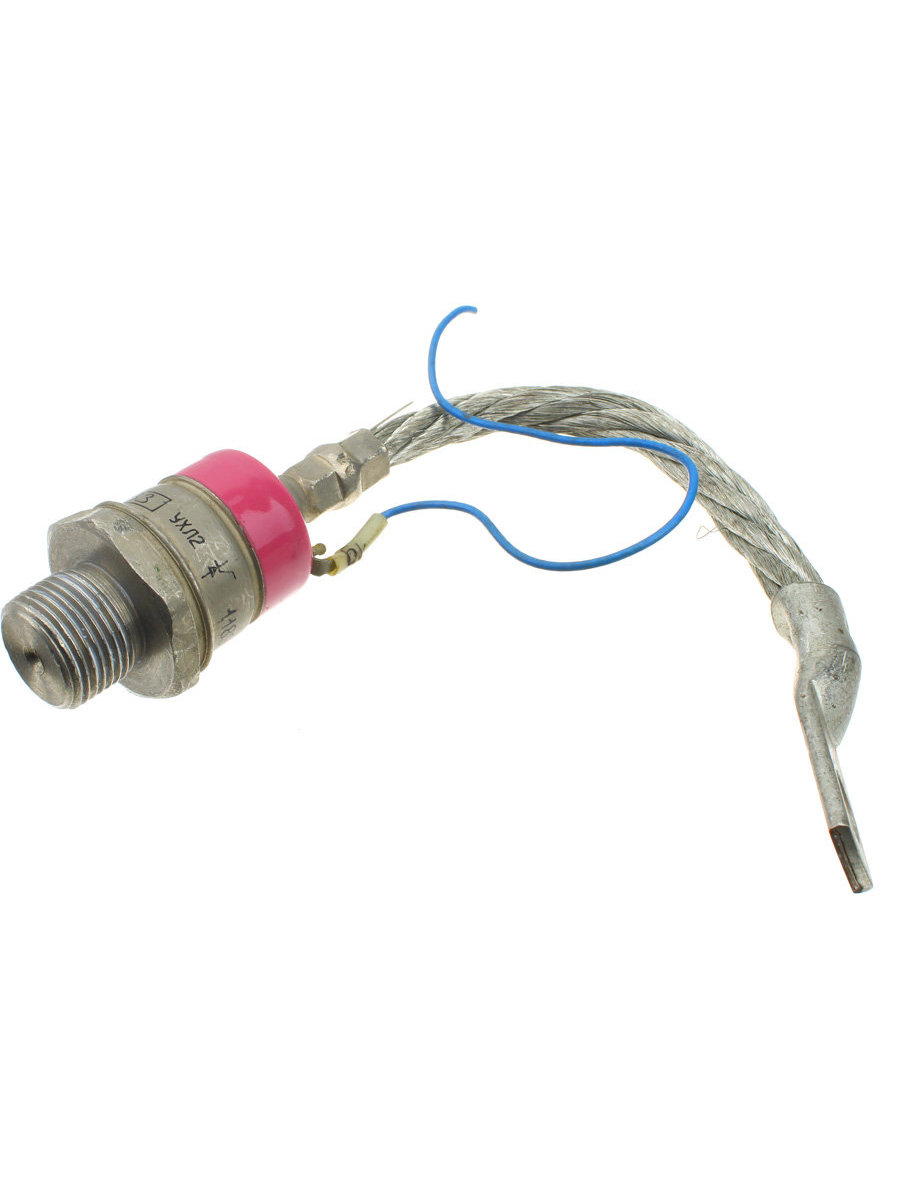 Тиристоры Т161-125 – силовые тиристоры штыревой конструкции общего назначения. Преобразовывают и регулируют постоянный и переменный ток до 125 ампер частотой до 500 Гц в цепях с напряжением 100 В – 1800 В. Тип корпуса тиристоров Т161-125 – ST6 (резьба М20х1,5), масса – 0,240 кг. Часто запрашиваемые номиналы тиристоров: Т161-125-8, Т161-125-10, Т161-125-12, Т161-125-14, Т161-125-16. Цоколевка (полярность): тиристор Т161-125 – прямой полярности: основание тиристора – анод, гибкий вывод – катод. Для отвода тепла тиристоры собирают с охладителями при помощи резьбового соединения. Чтобы обеспечить надежный тепловой и электрический контакт с охладителем, при сборке необходимо соблюдать усилие зажатия – закручивающий момент Md должен быть 20-30 Нм. Также для лучшего отвода тепла при сборке может использоваться теплопроводящая паста КПТ-8.