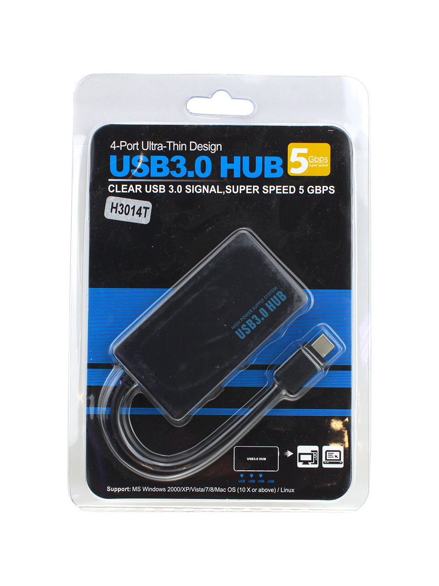 Концентратор TYPE C-4USB(G) HUB черный H3014T