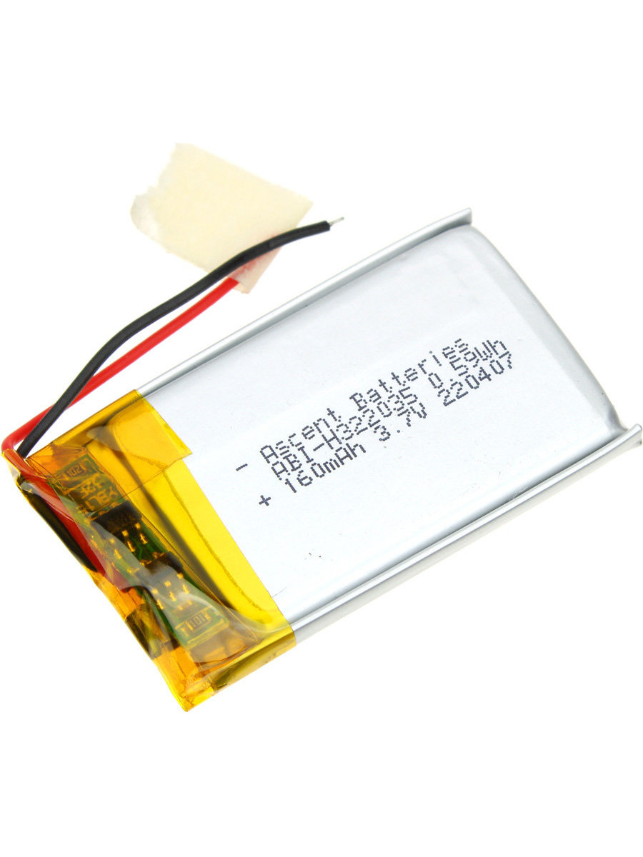 Аккумулятор • Химический тип - Li-Po • Напряжение 3,7В • Ёмкость - 180mAh • Высота 3.2мм • Ширина 20мм • Длина 35мм