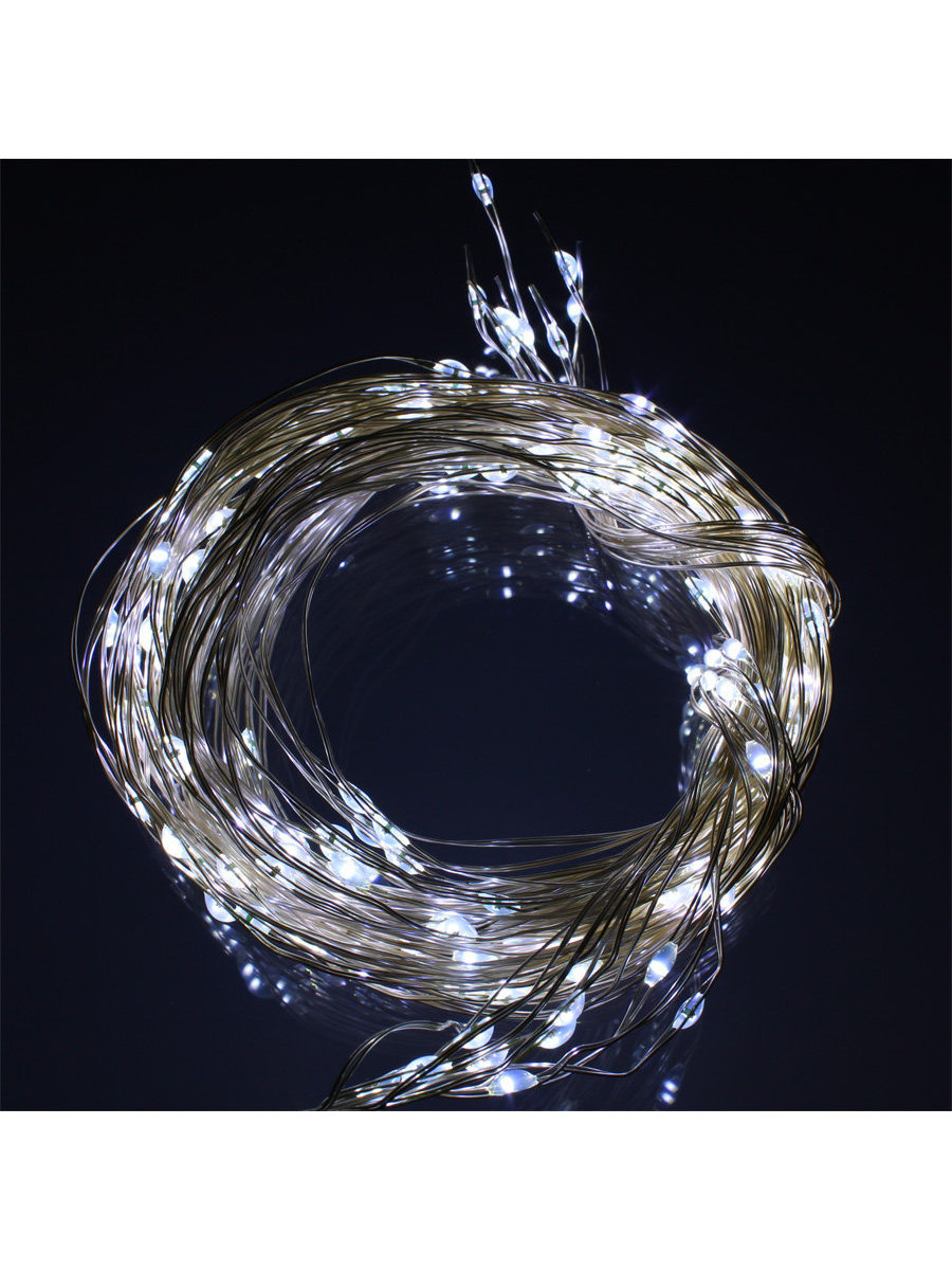 Светодиоды расположены на тонких проводках и напоминают капельки росы. Тонкий и пластичный провод, который послушно гнётся в зависимости от задачи. Гирлянда не нагревается и не бьётся. Очень удобна для создания дизайнерских инсталляций.