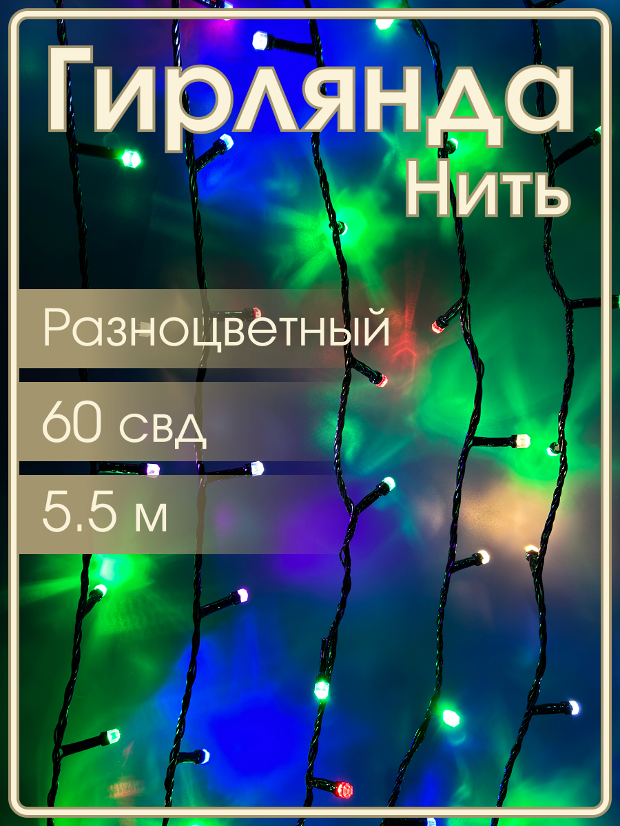 Многоцветная гирлянда, длина ~ 5.5 метра