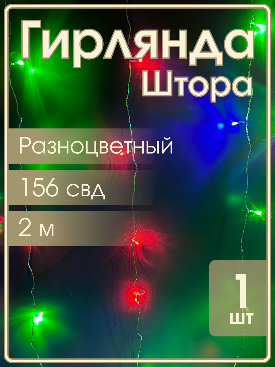 Гирлянда 156 СВД, штора цветная 2х1,2
