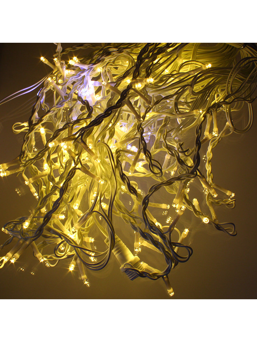 Гирлянда бахрома 100 свд 11*0,3 метра, теплая белая, с мерцанием белых холодных свд