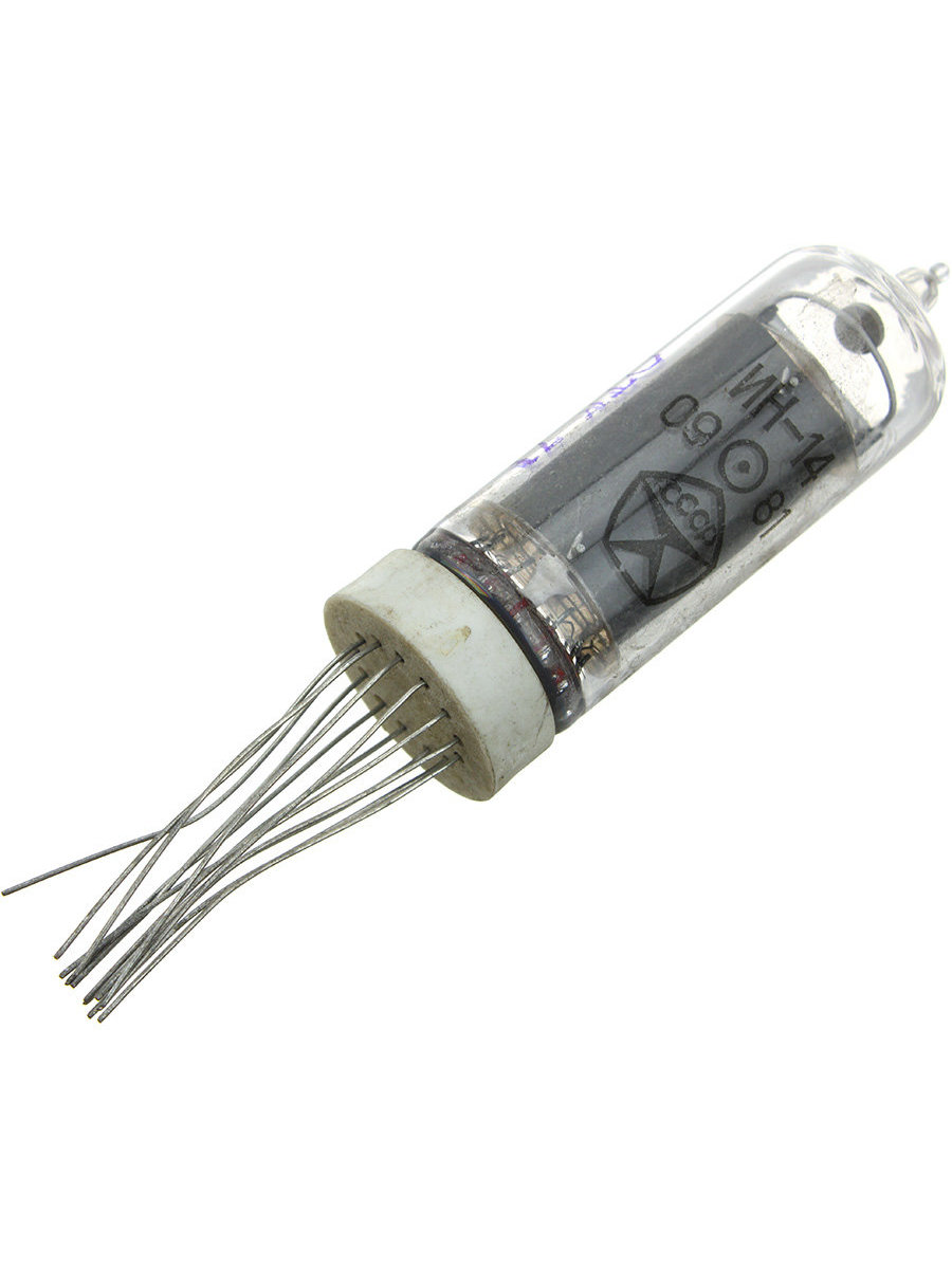 Индикатор тлеющего разряда для работы в качестве визуального цифрового индикатора электрических сигналов. Катоды — в форме арабских цифр (от 0 до 9) и двух запятых. Высота цифр 18 мм. Индикация производится через боковую поверхность баллона. Оформление — стеклянное, миниатюрное. Масса 20 г. Выводы электродов: 1 — анод; 2 — знак «запятая»; 3 — цифра 1; 4 — цифра 2; 5 — цифра 3; 6 — цифра 4; 7 — цифра 5; 8 — цифра 6; 9 -цифра 7; 10 — цифра 8; 11 — цифра 9; 12 — цифра 0; 13 — знак «запятая».