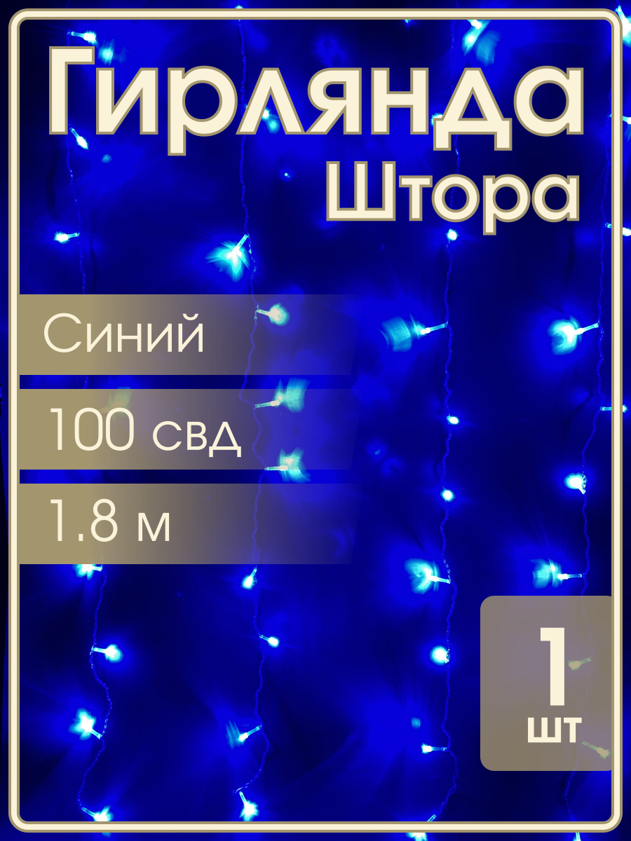 Гирлянда 100 СВД, синяя штора 1,8х1 метр