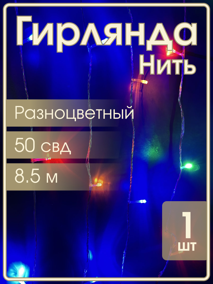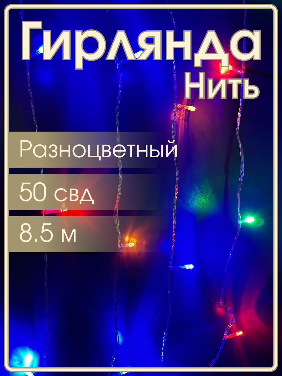 Гирлянда 50 СВД, цветная, 8,5 метров белый провод