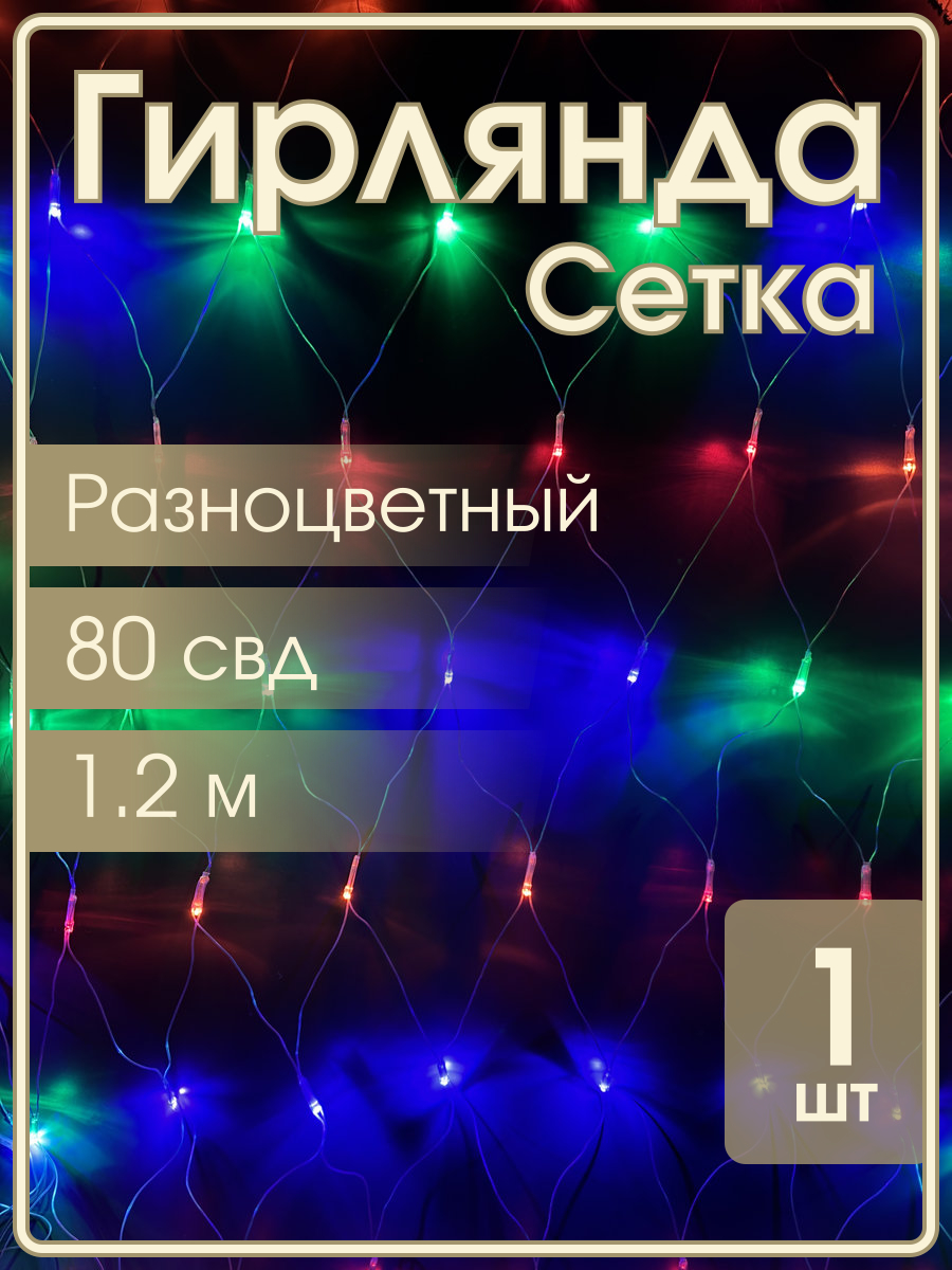 Гирлянда 80 СВД, цветная сетка 1,2х1м
