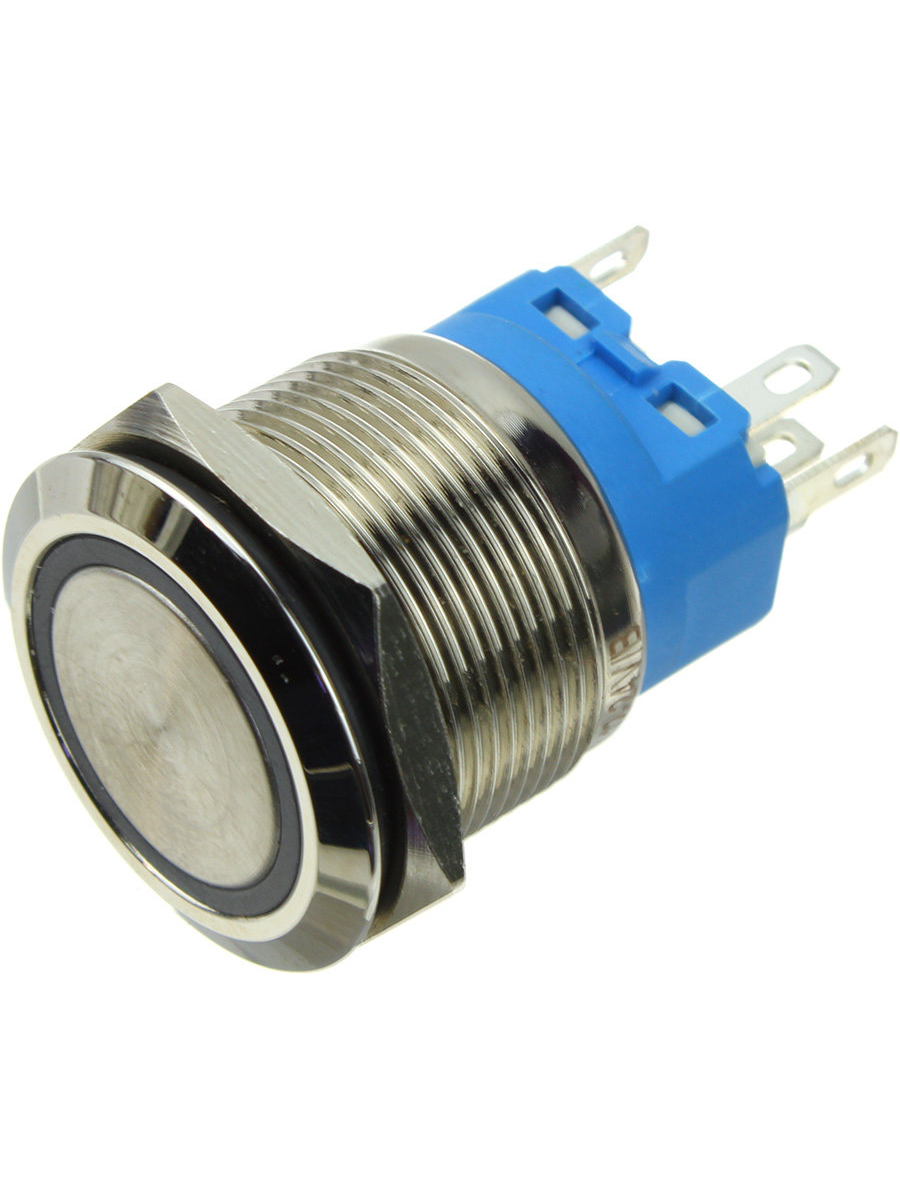 Кнопка d25мм, металлическая, антивандальная, с подсветкой, без фиксации 12-24V