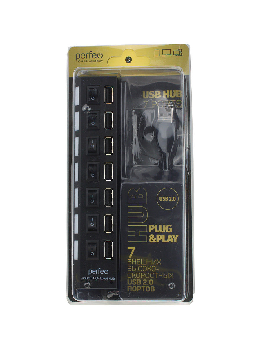 Концентратор USB-7USB(G) HUB с выключателем черный Perfeo