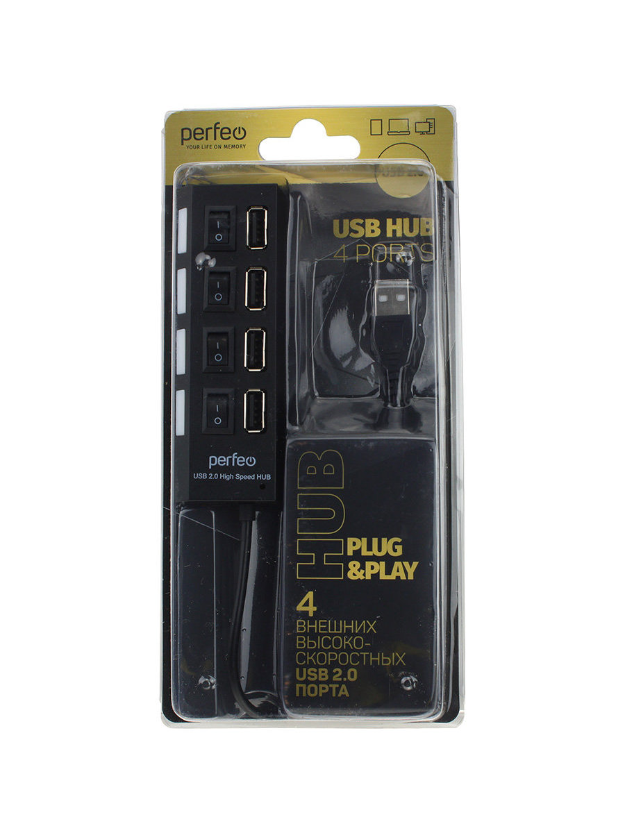Концентратор USB-4USB(G) HUB с выключателем черный Perfeo