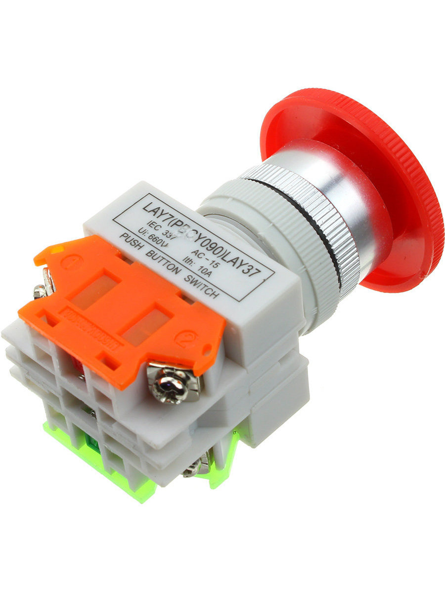 Выключатель-кнопка 380V 10А Ø22 красная Аварийная остановка предназначена для коммутации электрических цепей управления переменного тока напряжением до 380В. Кнопки аварийного останова отличаются от обычных выключателей, просто выключающих питание оборудования устройств, тем, что выполняют отключение оборудования с защитой от неправильного его использования. Такие специализированные выключатели требуются для самого разного электротехнического оборудования (для промышленного оборудования, автоматизации, электрических машин, панелей управления). Кнопка имеет грибовидную головку. Монтажная пластина входит в комплект.
