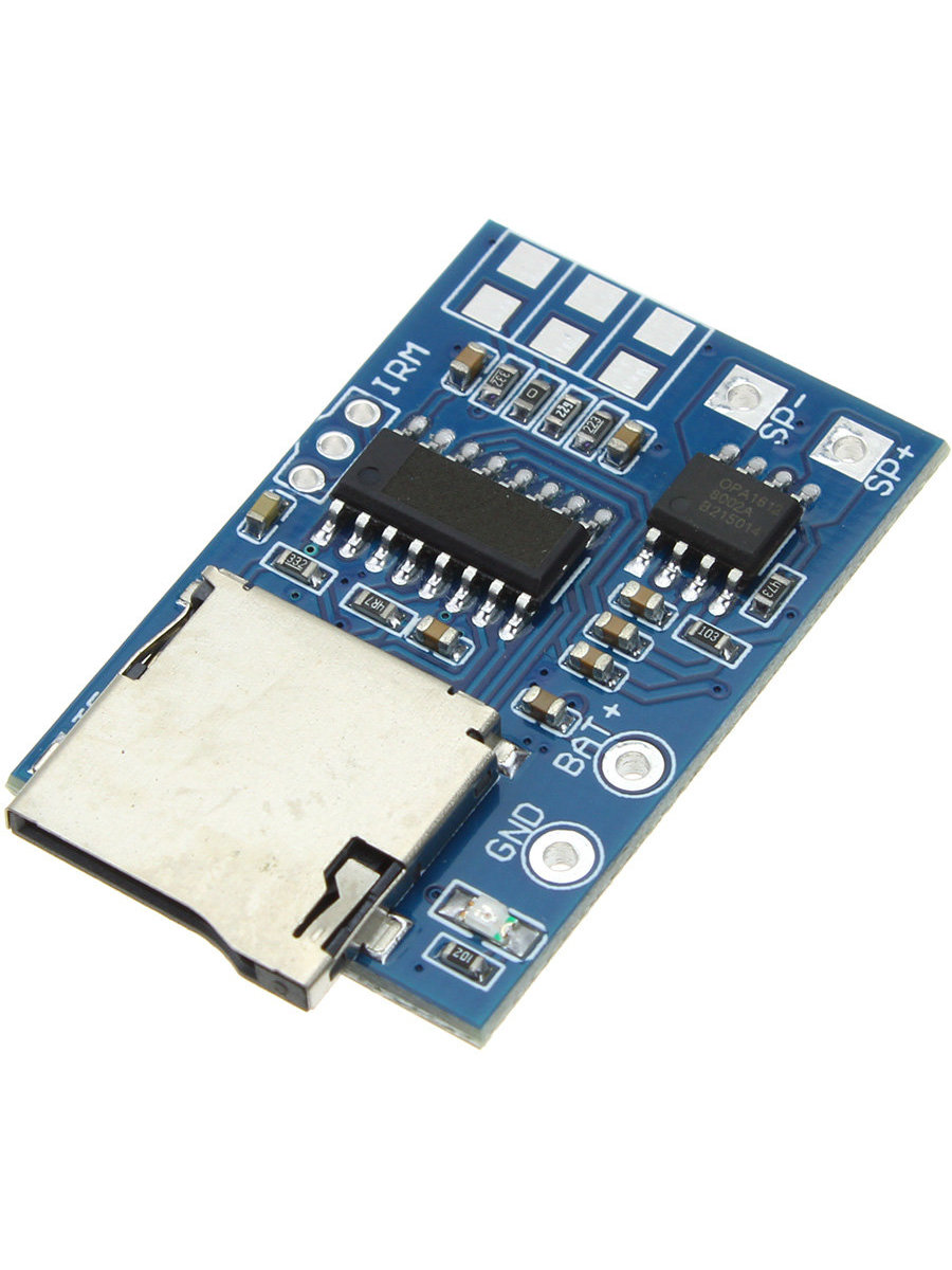 Модуль MP3 плеера имеет встроенный усилитель мощностью 2 Вт.