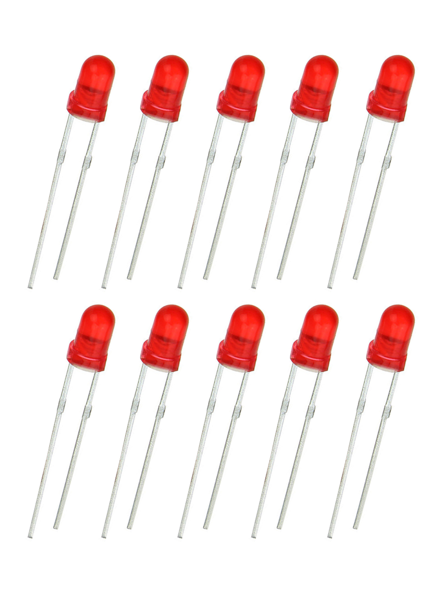 Светодиод 3мм, цвет красный, красная линза 3V, упаковка 10 штук