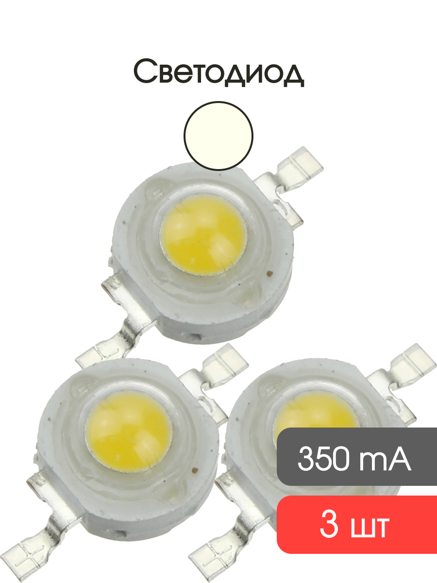 Светодиод 1W 110-120Lm, белый теплый, 350mA, (упаковка 3шт) 3000-3200К