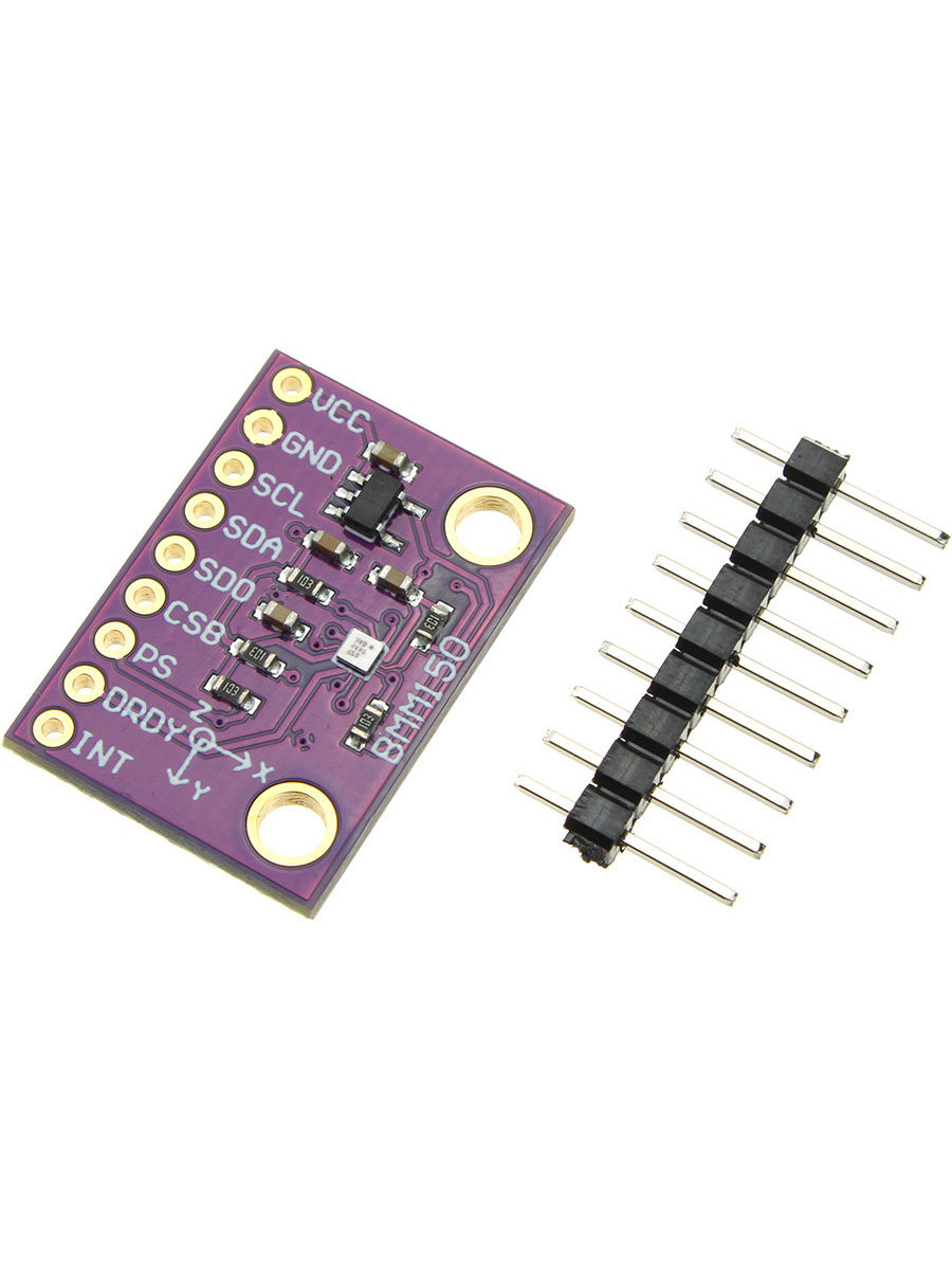 BMM150 - это маломощный и малошумящий 3-осевой цифровой геомагнитный датчик. BMM150 гармонично сочетается с инерциальным измерительным устройством (IMU), состоящим из 3-осевого акселерометра и 3-осного гироскопа. Благодаря программному обеспечению для объединения данных датчиков, адаптированному к аппаратному обеспечению, решение определяет абсолютную пространственную ориентацию, а также векторы движения с высокой точностью и динамикой.