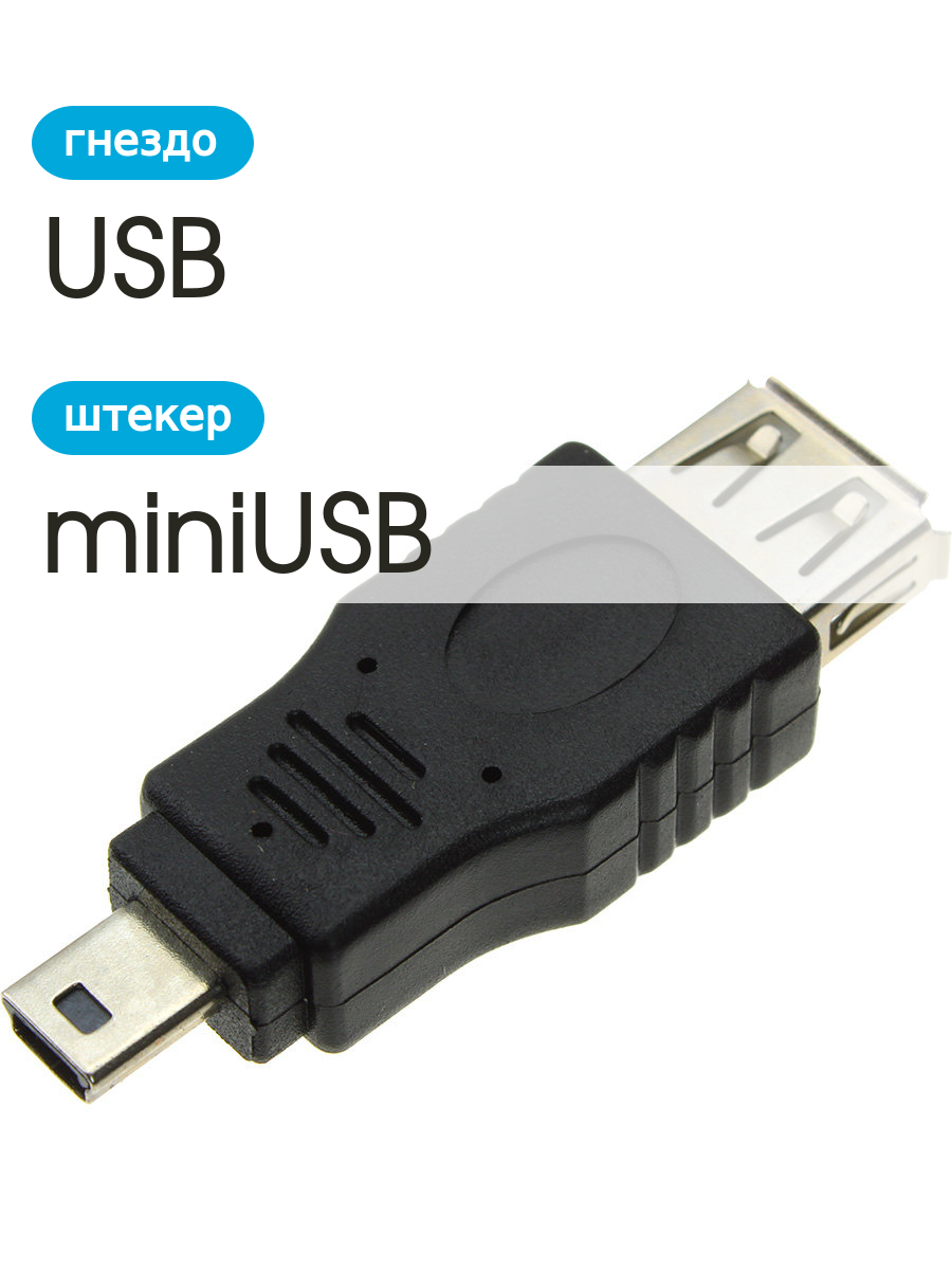 Переходник USB(G)-miniUSB 5PIN, черный Perfeo