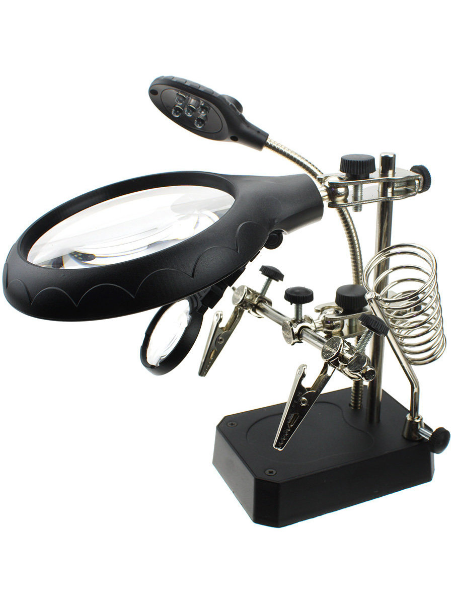 Третья рука с линзой 90мм подсветка/пружина для паяльника, USB