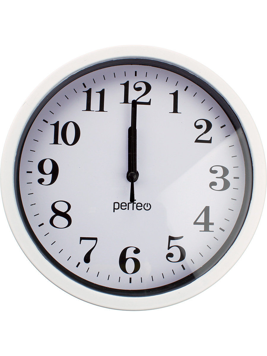Часы настенные Perfeo d200мм PF-WC-001, белый корпус, белый циферблат
