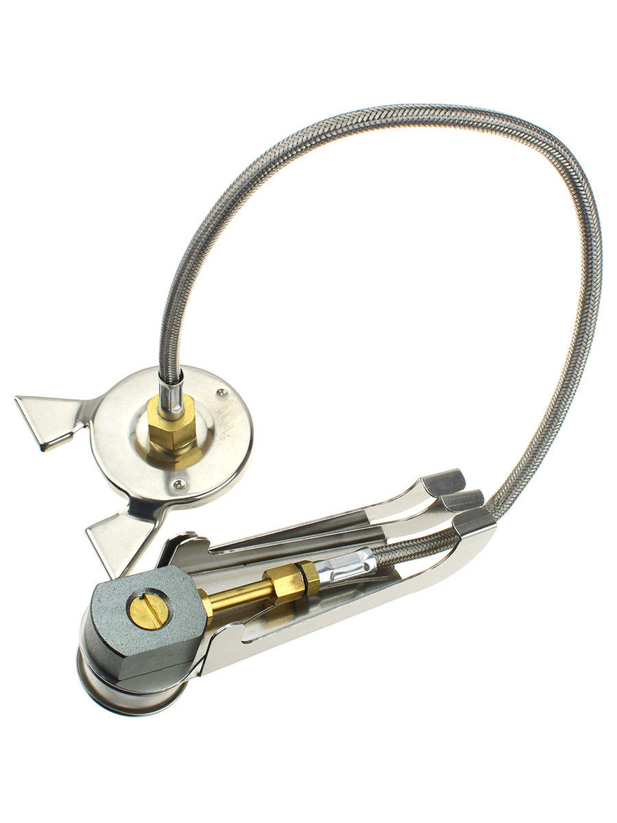 Используется для подключения газовых светильников и портативных плит серии S с клапаном резьбового типа "Screw Type" к газовым баллонам с нажимным клапаном и цанговым захватом. После подключения, в качестве опорной поверхности используется опора переходника.