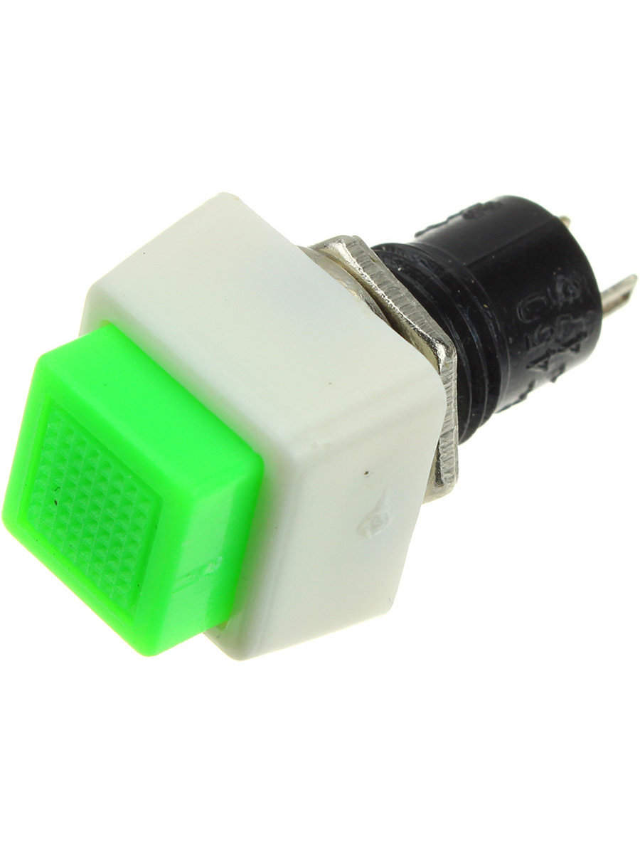 Кнопка 10мм квадратная бело-зеленая, без фиксации, на замыкание