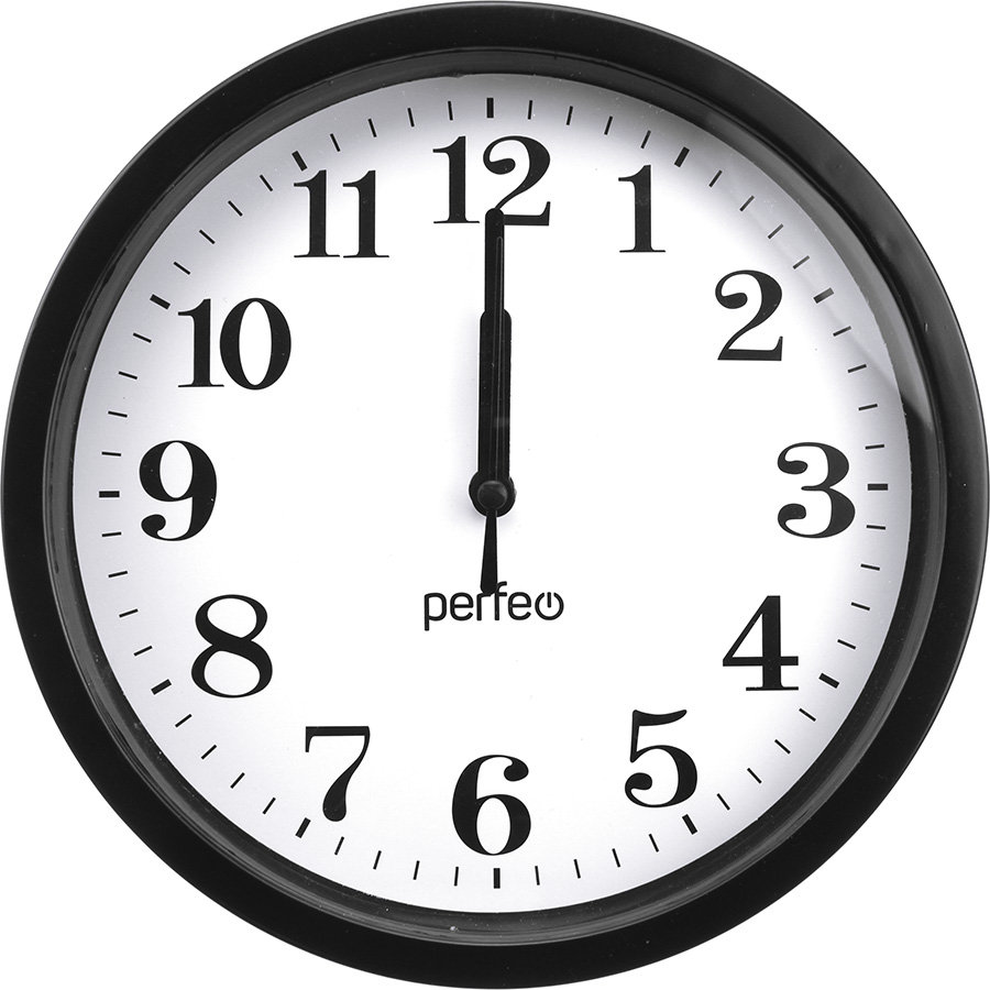Часы настенные Perfeo d200мм PF-WC-001, черный корпус, белый циферблат