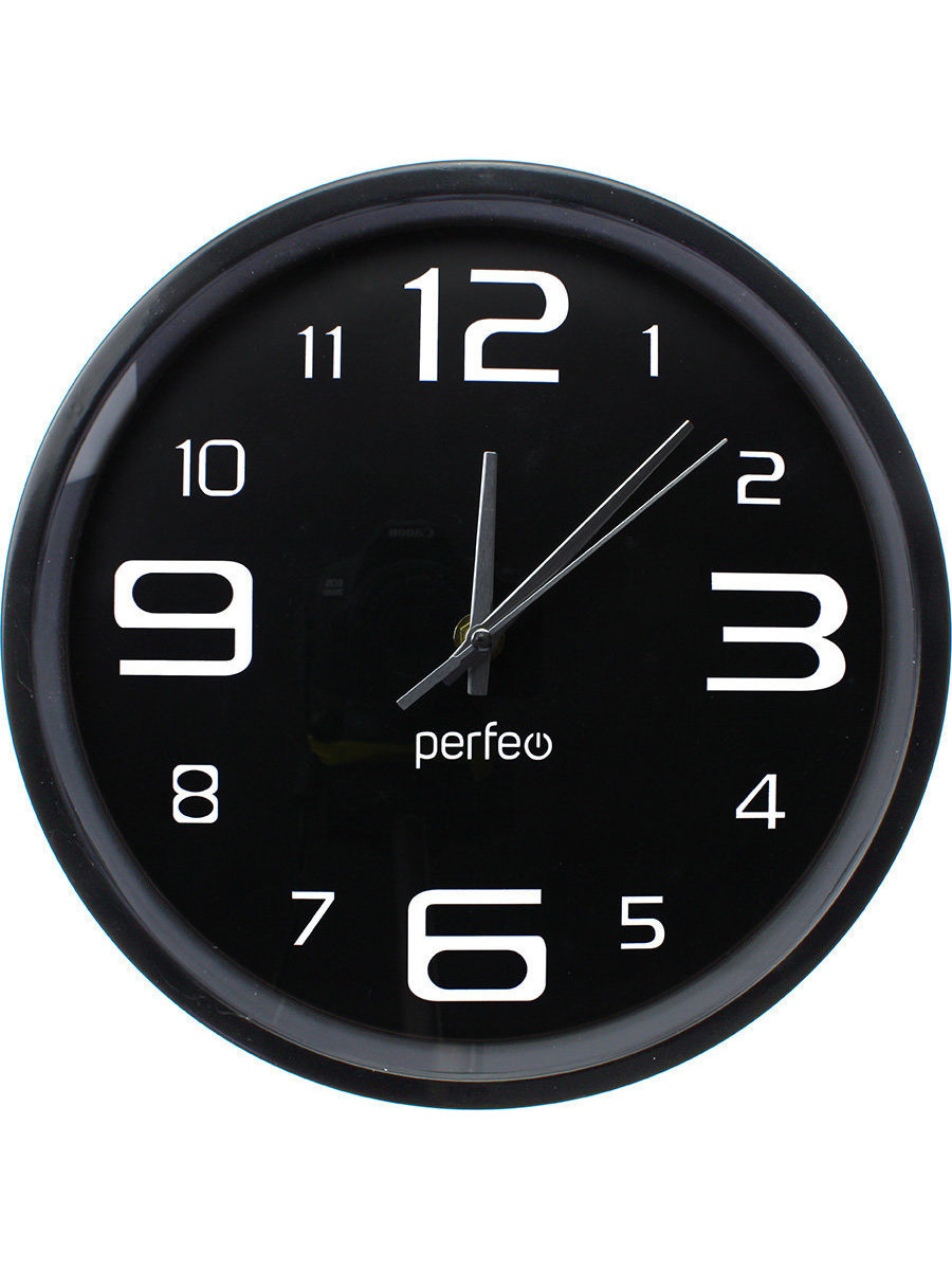 Часы настенные Perfeo d250мм PF-WC-002, черный корпус, черный циферблат