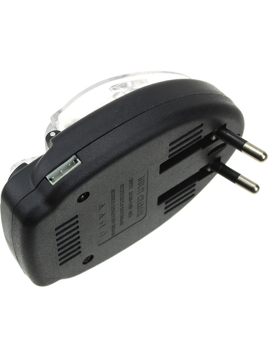 Универсальное зарядное устройство получает от сети 220В. Может заряжать батареи различных устройств ёмкостью от 200 до 3000мАч. Поскольку "усики" можно развести на любое расстояние вы получаете значительную свободу в размера и форме подключаемых батарей. Полярность при подключении не важна, так как она автоматически определяется перед началом заряда.