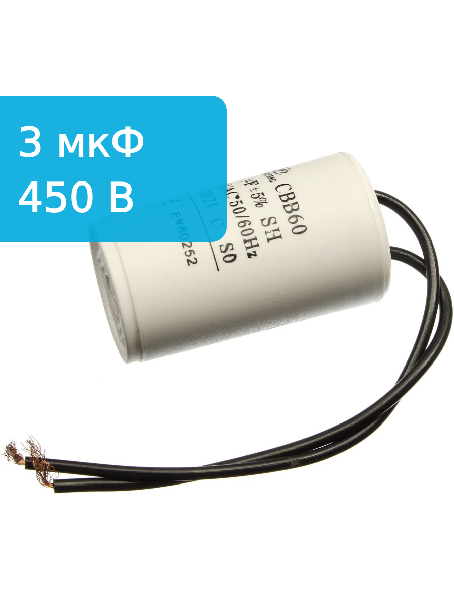 Конденсатор пусковой 3мкФ 450В 5% с гибкими выводами