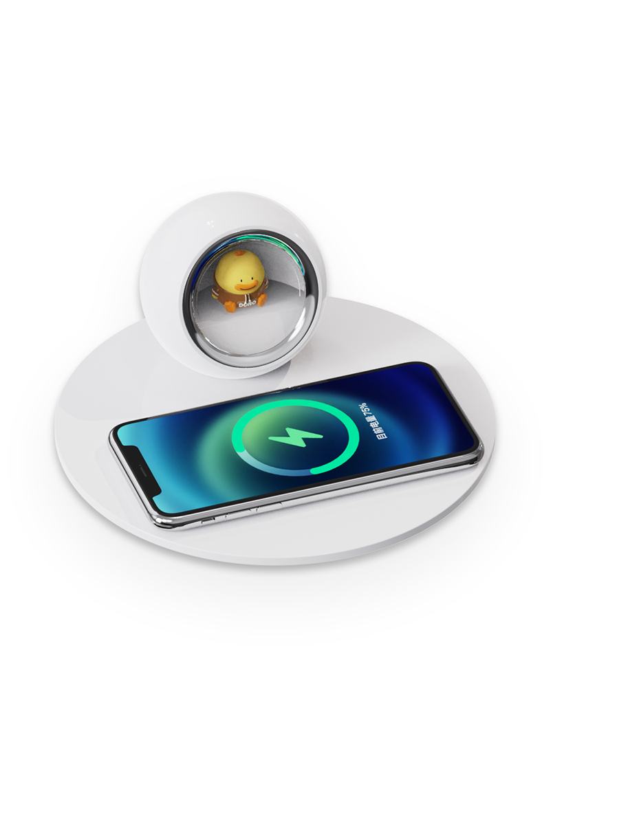 Беспроводная зарядная станция К22Т в корпусе из пластика лаконичного белого цвета обеспечивает безопасную и быструю подзарядку смартфона, поддерживающего передовой стандарт беспроводной зарядки.