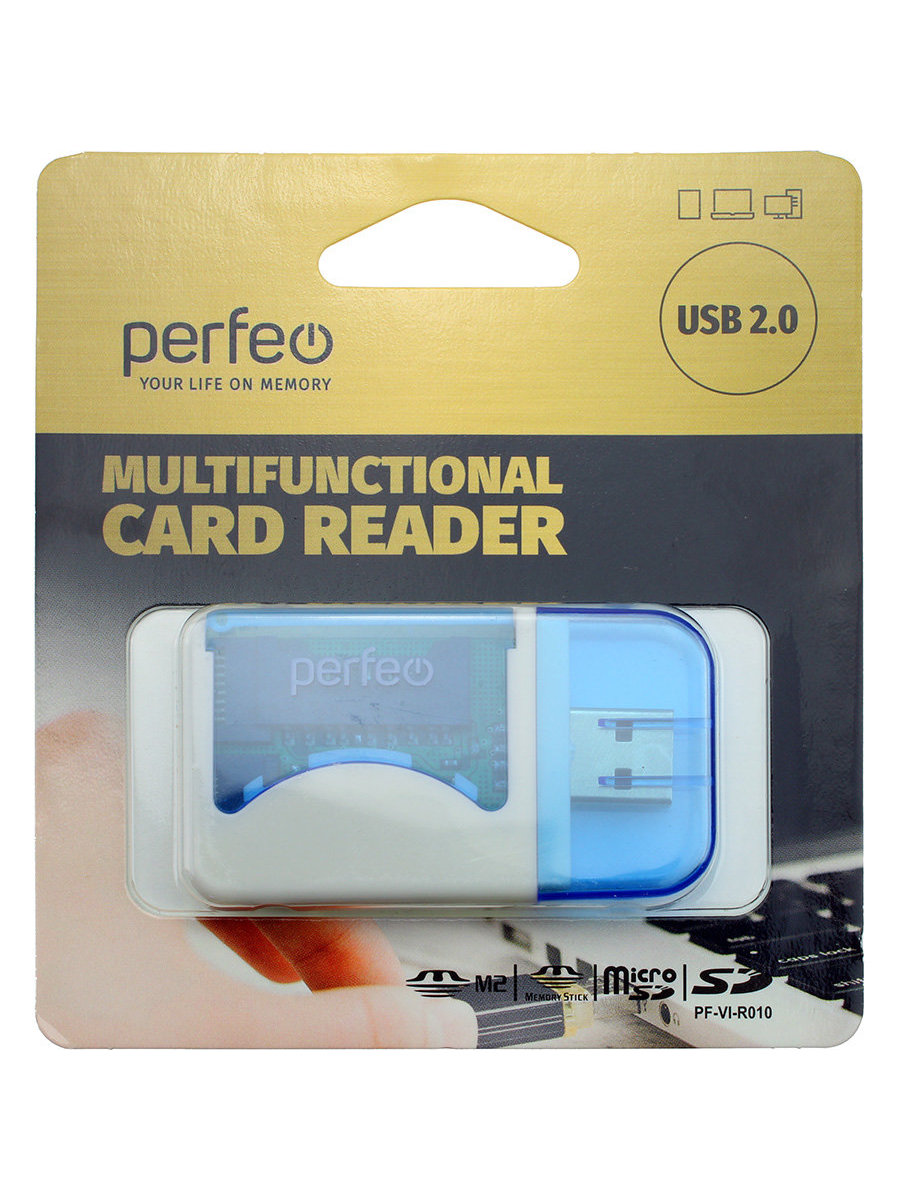 Картридер Perfeo PF-VI-R010blue SD/MMC/microSD/MS/M2