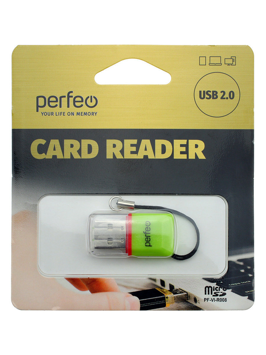 Картридер Perfeo microSD(G)-USB(A) PF-VI-R008 зеленый