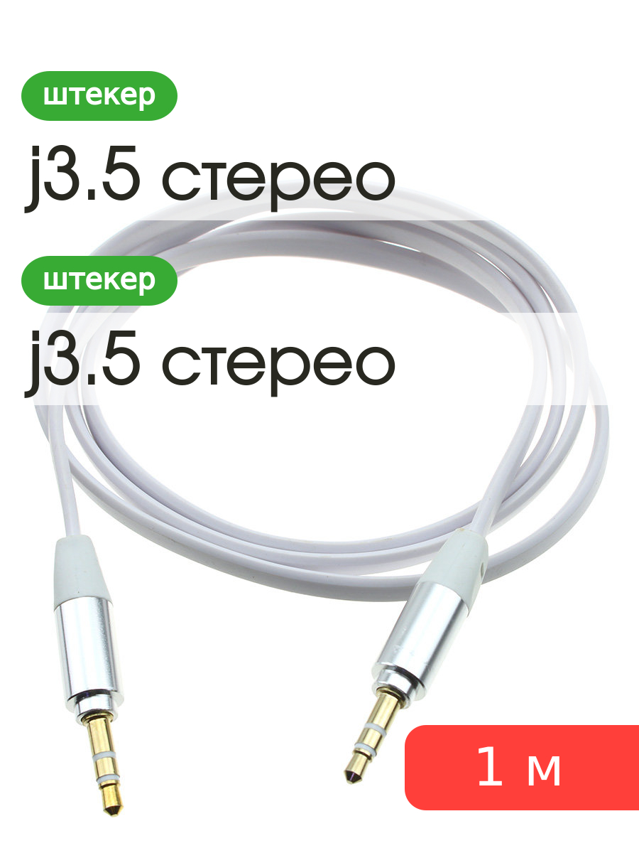 Шнур J3.5-J3.5 1м шнур плоский, JD-47 белый