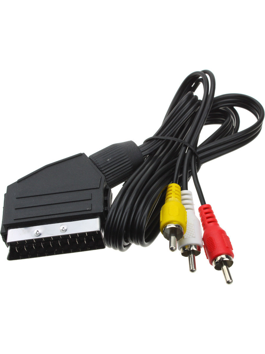 SCART – это аналого-цифровой европейский стандарт разъема для подключения мультимедийных устройств. В настоящее время этот разъем используется большим количеством производителей телевизоров и DVD-проигрывателей. постепенно заменяя популярные RCA-разъемы. благодаря лучшему качеству сигнала. Шнур SCART Plug - 3RCA Plug предназначен для передачи видео и аудио (stereo) сигнала аппаратуре. имеющей разъем SCART и RCA. На одном конце шнура размещен штекер SCART-разъема. на другом – 3 штекера RCA .