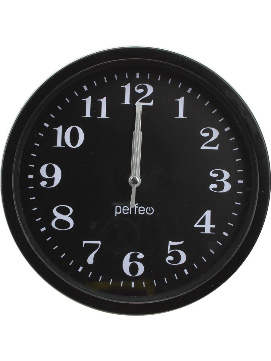 Часы настенные Perfeo d200мм PF-WC-001, черный корпус, черный циферблат