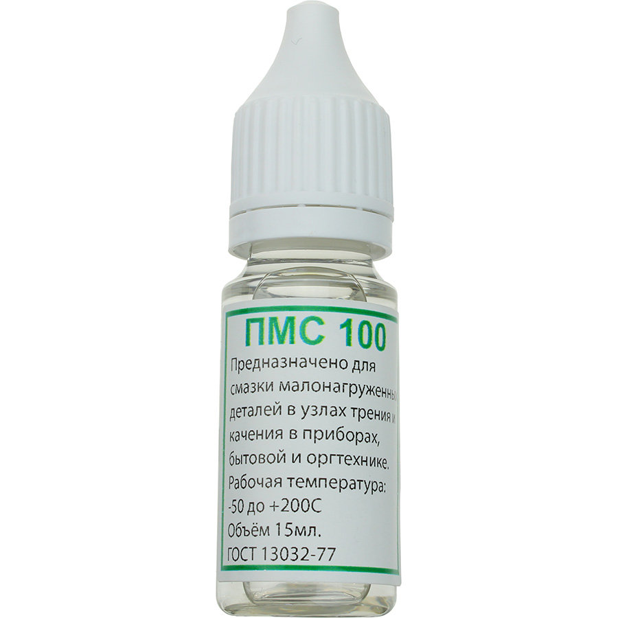 Силиконовое масло ПМС-100 (15 мл) предназначено для смазывания малонагруженных деталей в механизмах трения и качения в приборах, бытовой и оргтехнике, а также для смазывания в производстве для пресс-форм резинотехнических изделий и пластмасс, резиновых уплотнений, обработки высоковольтных проводов, используется в паяльных ваннах для защиты расплавленного припоя от окисления. Масло обладает хорошими электроизоляционными, антиадгезионными и пеногасящими свойствами, легко образует пленки на самых разных поверхностях (металл-пластик, пластик-резина и т.п.).