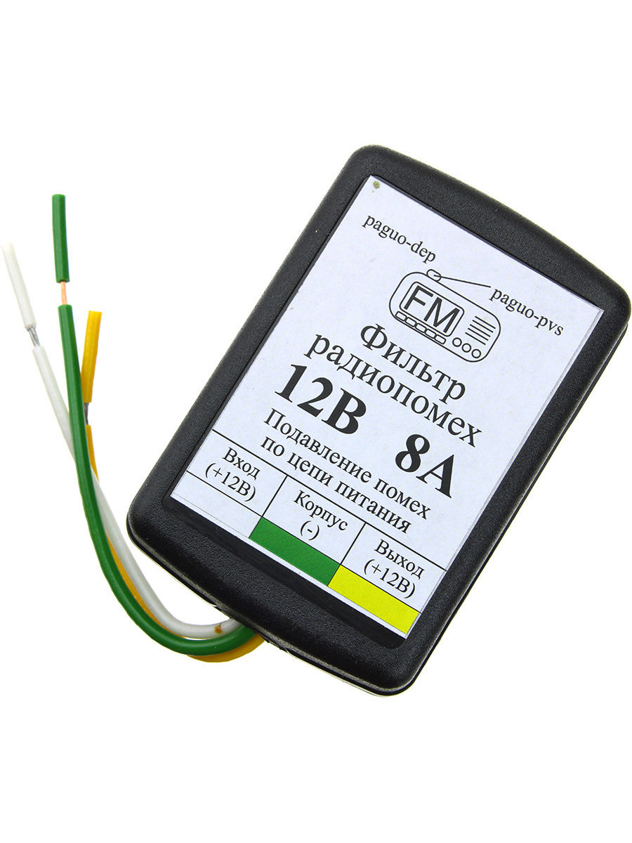 • Применяется для ослабления помех, проникающих в автомагнитолу по цепи питания 12 V от бортовой сети автомобиля.