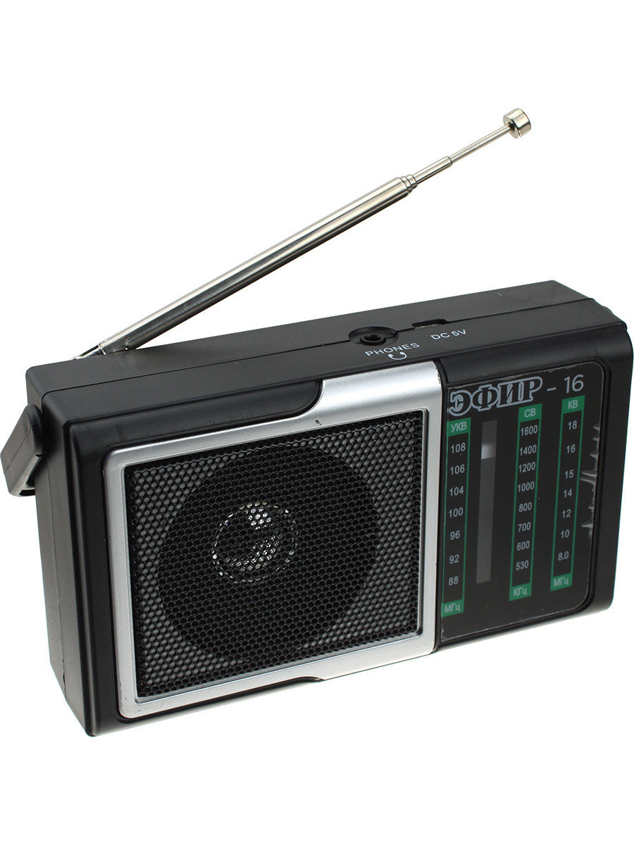 • Радиоприемник Эфир-16 предназначен для приема радиовещательных станций в диапазонах FM , СВ и КВ.